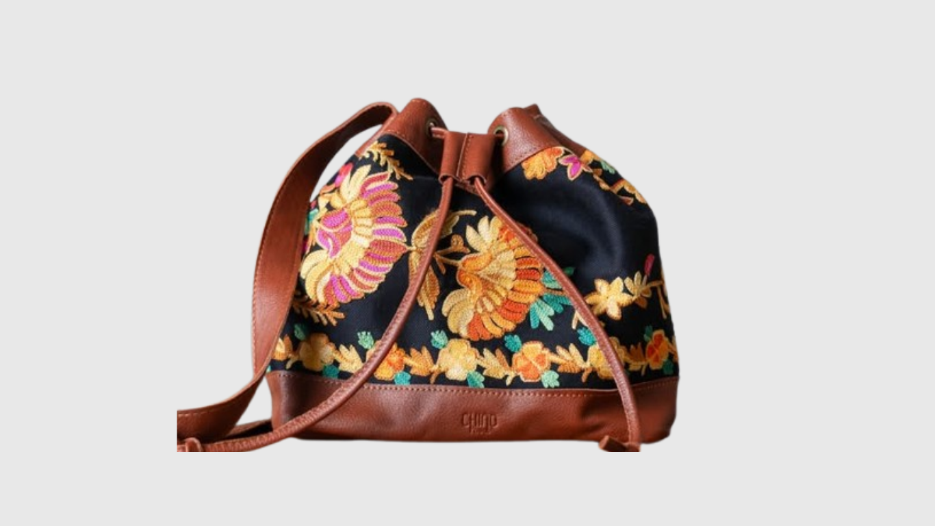 Semi-handcrafted with original buff leather and embroidered fabric, the Chino Thaili Bag blends tradition with everyday practicality. It features a spacious interior, 2 built-in pockets, a drawstring closure, and an adjustable strap for easy carrying.